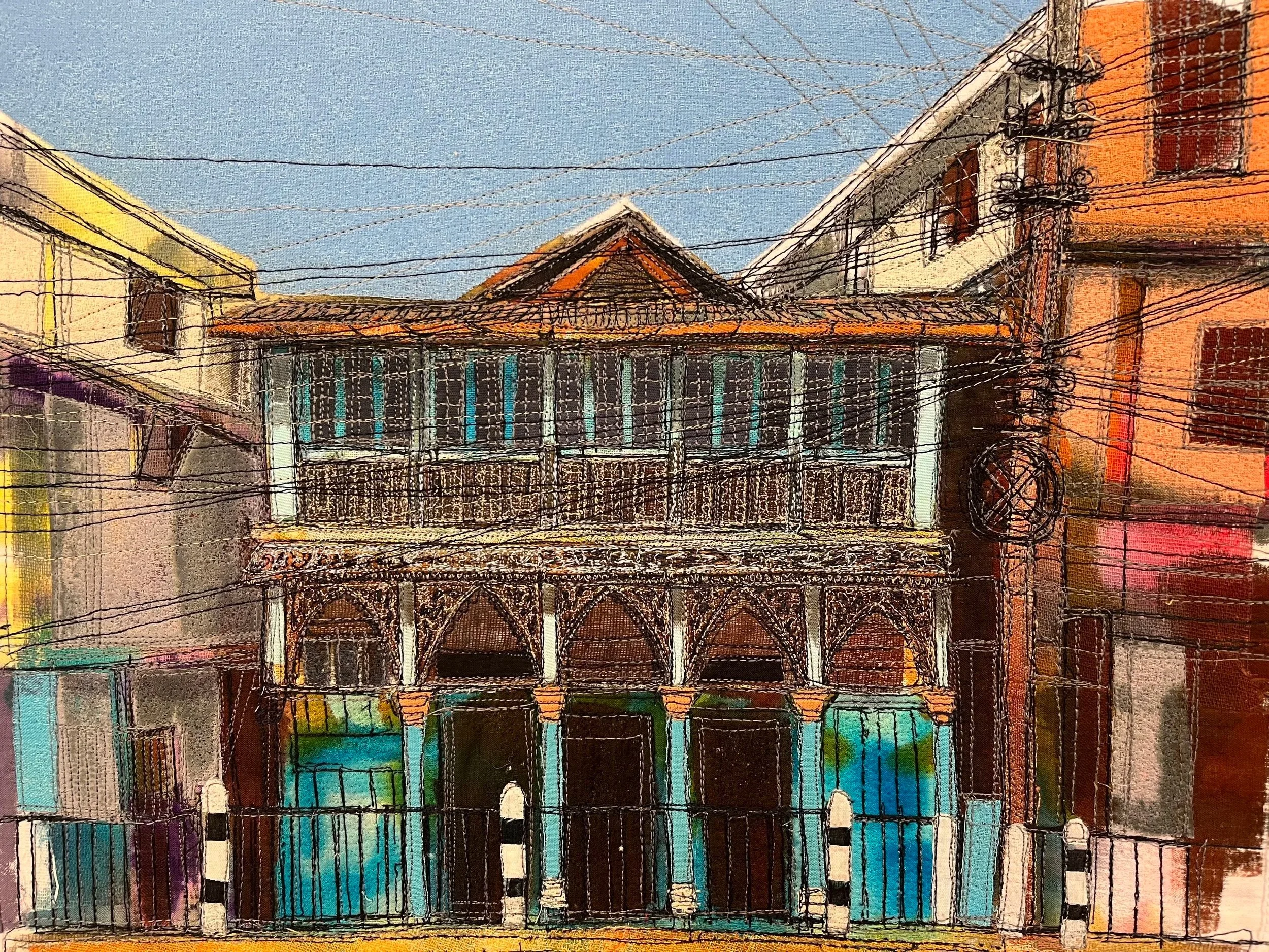 TEXTILE IMAGE- PRINT CLOTH INK STITCH. THE SHILLONG INDIA COLLECTION