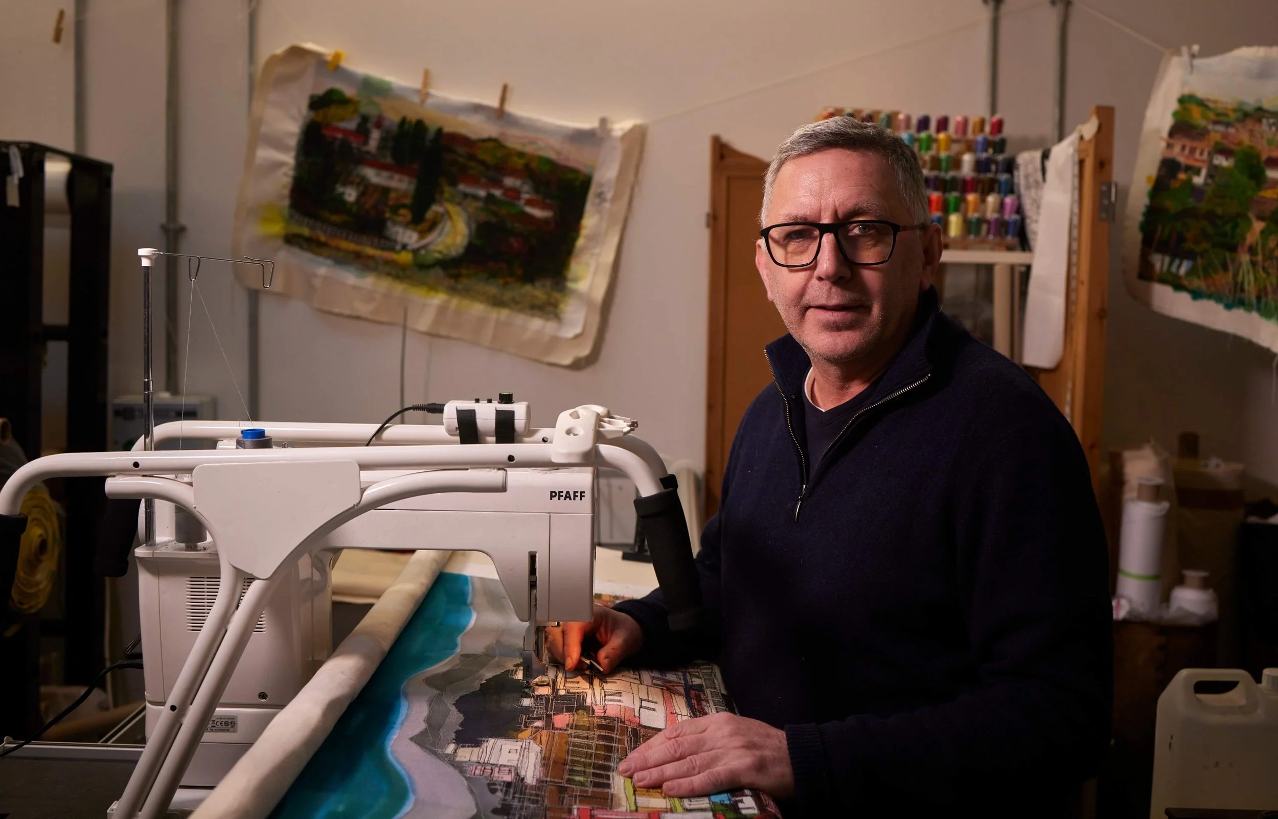 Born and raised in the slate quarry village of Bethesda, North Wales he graduated from Manchester with a BA (hons) in woven textiles then an MA in textiles from the Royal College of Art.