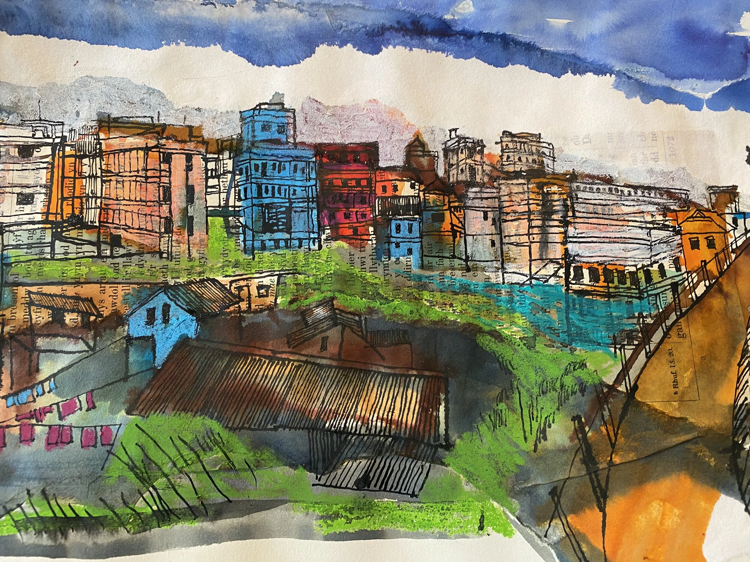 Drwy Law a llun takes a step into the life of Beryl Edwards a nurse and Margaret Owen a sister at The Gordon Roberts Hospital Shillong during !945 to 1947. Their letters to family and friends, home in Wales record and create vivid images of their lives and experiences in the Khasi hills, the environment, buildings and culture at the hight of the Welsh presence and influence. Their words have inspired me to view and present my visit to Shillong as another means of correspondence, by thinking of my drawings as post cards. A visual dairy to communicate and share what you see and experience to others